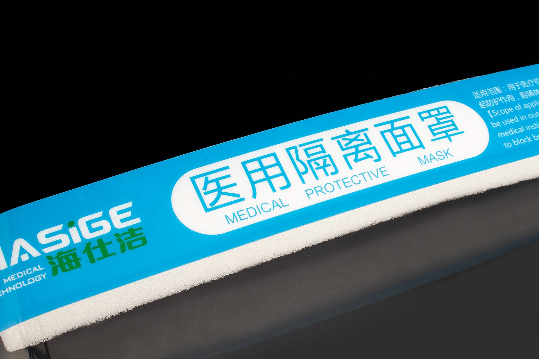 產品描述:醫用隔離面罩由高分子材料制成的防護罩,泡沫條和固定裝置組成。非無菌提供,一次性使用。